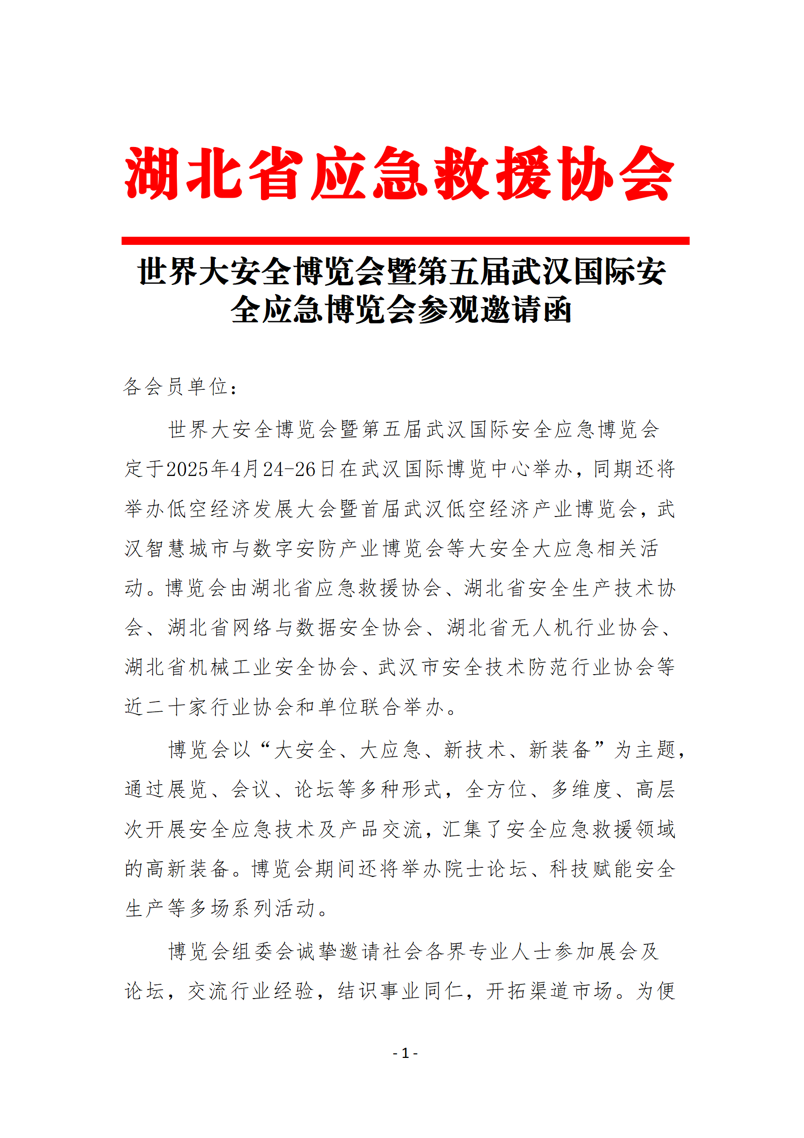 世界大安全博览会暨第五届武汉国际安全应急博览会参观邀请函